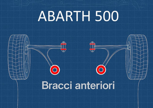 Kit 4 boccole BRACCI ANTERIORI in poliuretano Fiat 500 Abarth - 595 - 695